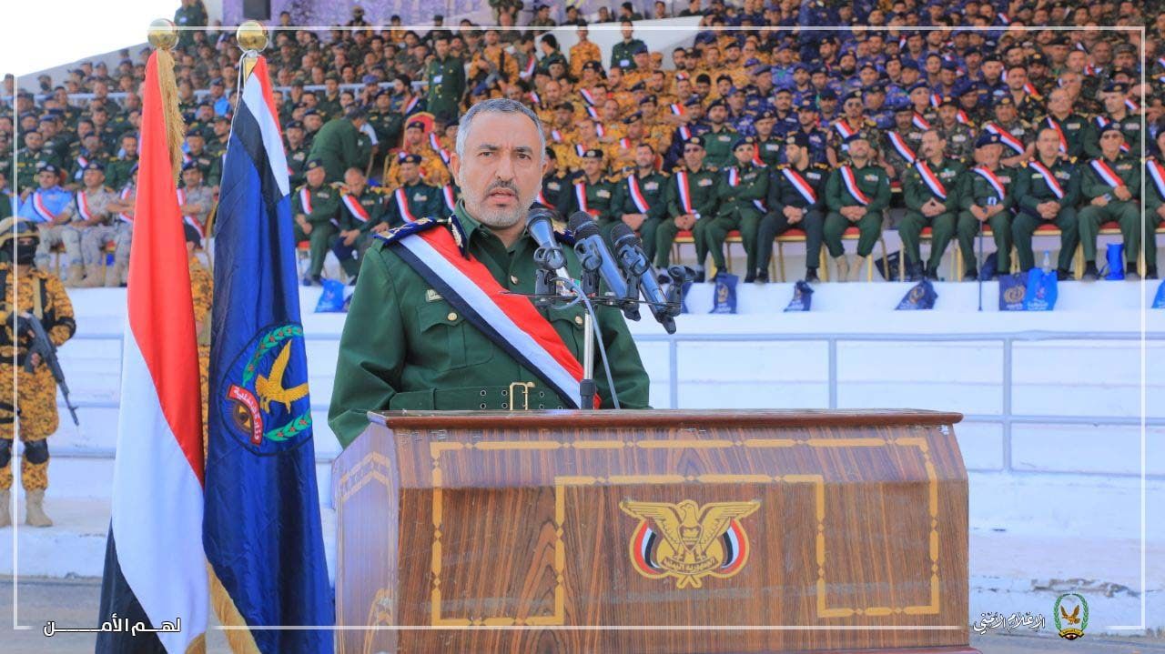 وقال” إذا كان لنا من رسالة في هذا اليوم العظيم فهي لقائد المسيرة القرآنية السيد عبد الملك بدر الدين الحوثي، والذي نقول له نحن جند الله وأنصاره تحت لواءك ورهن إشارتك على أتم الجاهزية لجميع المهام الأمنية والعسكرية وكلنا ثقة بالله وصدق وعده للمؤمنين بالغلبة والفلاح والنصر”.