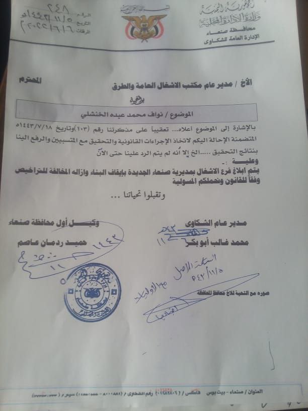 الرئيسية/مديرية صنعاء الجديدة .. بين مطرقة الاهمال الحكومي وسندان المباني والابراج المخالفة/photo_٢٠٢٢-٠٩-١٩_١٥-٥١-٥٠ photo_٢٠٢٢-٠٩-١٩_١٥-٥١-٥٠