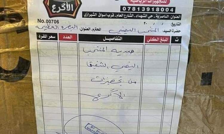 في الوقت الذي تتواصل فيه ردود الأفعال الغاضبة جراء إهمال المنتخب الوطني المشارك في خليجي 25 بمدينة البصرة من قبل حكومة الفنادق وما يسمى اتّحاد كرة القدم التابع له، وجّه تاجرٌ عراقي صفعة قوية في وجه المرتزِق أحمد العيسي عقب تكفله، أمس الأحد، بتوفير مستلزمات المنتخب اليمني المشارك في خليجي 2023 بالبصرة.