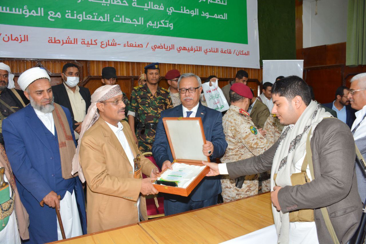 وتم في ختام الفعالية تكريم قيادات مدنية وعسكرية وأمنية وشخصيات اعتبارية ومسؤولين في مختلف مؤسسات وأجهزة الدولة وممثلي الجهات الداعمة والمتعاونة والمساهمة في دعم مؤسسة يمن ثبات بدروع وشهادات تقديرية.