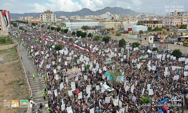 وأكدت الحشود على موقف الشعب اليمني الثابت والمبدئي في دعم ومناصرة الشعب الفلسطيني حتى تحرير كافة الأراضي المغتصبة.