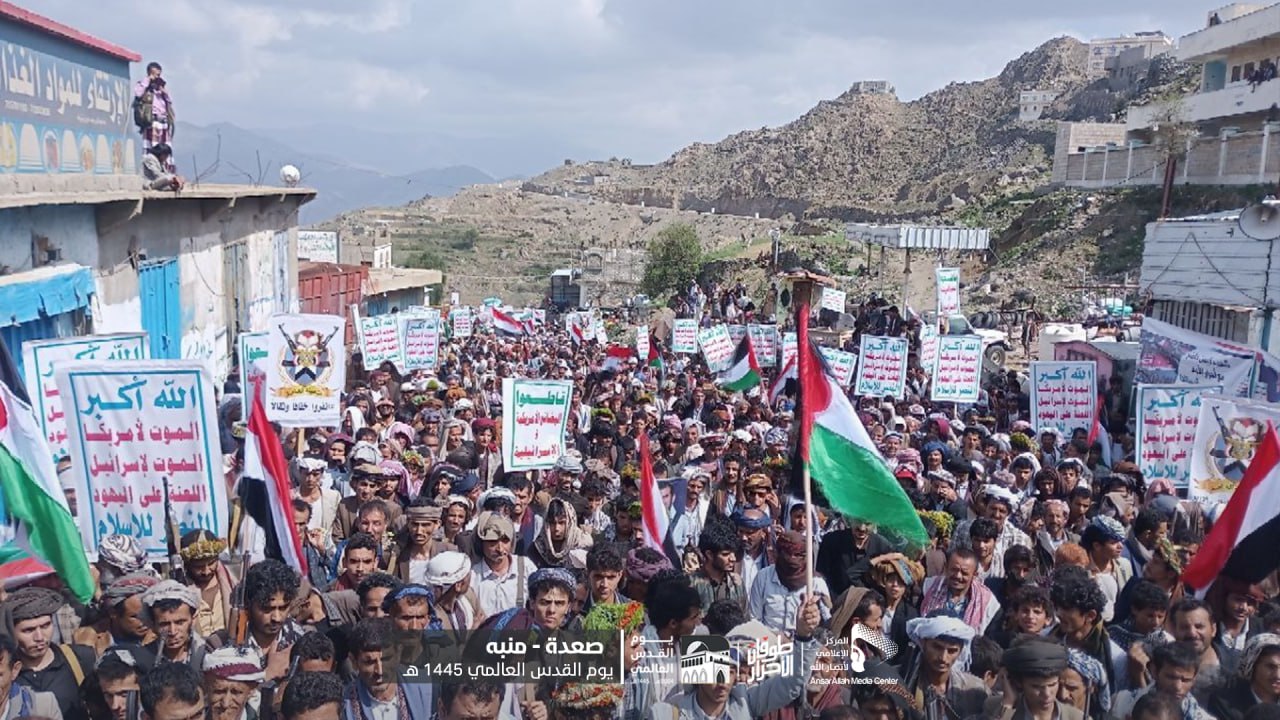 كما جدد الخروج الشعبي الواسع في كل ساحات وميادين الصمود التأكيد على ارتباط وتمسك شعب الإيمان والحكمة بالقضية الفلسطينية إيمانا منه بأن الأمة لا يمكن أن تقوم لها قائمة إلا بعد تحرير الأراضي والمقدسات الاسلامية من رجس الصهاينة اليهود.
