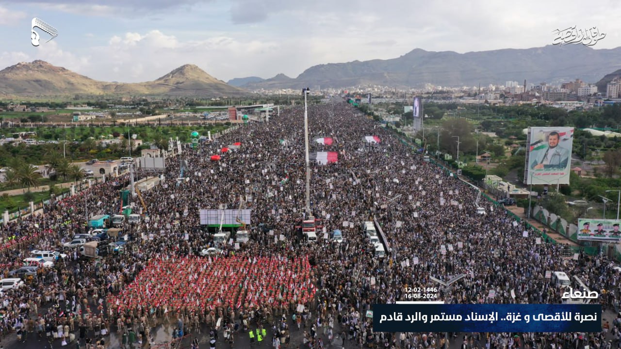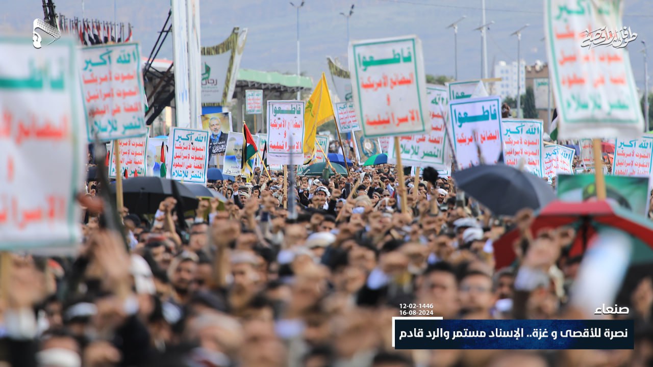 رغم الامطار الغزيرة التي تشهدها اليمن، الا انها لم تحول دون خروج ملايين اليمنيين في مختلف المحافظات، بما فيها العاصمة صنعاء، دعما للشعب الفلسطيني.