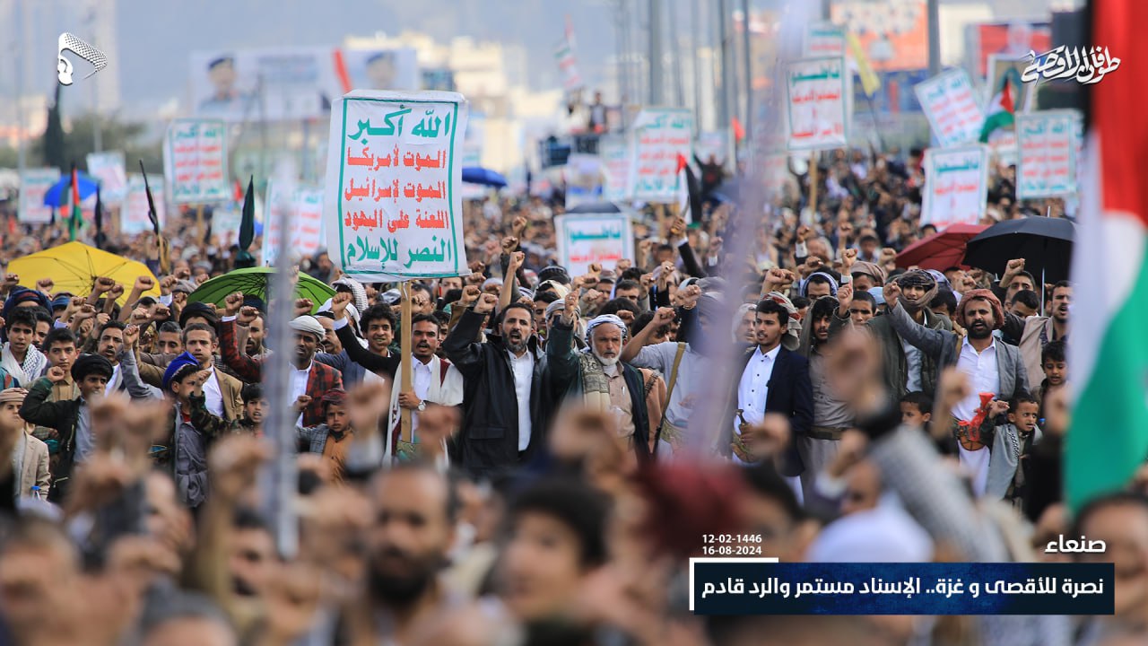 ووجه بيان المسيرات الجماهيرية التي حملت اليوم شعار “نصرة للأقصى وغزة.. الإسناد مستمر والرد قادم”، رسالة لشعوب الأمة قائلاً: “نقول لشعوب الأمة وكلنا استغراب وألم أمام مشاهد جرائم الإبادة بقطاع غزة والانتهاكات المستمرة في المسجد الأقصى هل مازلتم أحياء؟ لماذا لا تتحركون؟”.