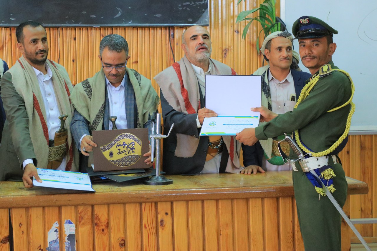وفي ختام الاحتفال بحضور مدير عام الإعلام والتوعية نجم الدين إدريس، ومدير عام الرعاية التربوية حسين الشيخ، ومدير عام الرعاية الاجتماعية عبدالخالق الجرادي، ومدير عام الرعاية الصحية محسن الهدوي،ومديرا فرعا الهيئة بمحافظة صنعاء وعمران حمير حمزة وإبراهيم النونو ، وقيادة عسكرية وأمنية تم تكريم وزير الداخلية اللواء عبد الكريم أمير الدين الحوثي وعميد كلية الشرطة العقيد هاجس الجماعي بدرعي الوفاء تقديرًا لجهودهما في الاهتمام ورعاية أبناء وأقارب الشهداء، كما كُرم الخريجون من أبناء الشهداء بشهادات تقديرية ومبالغ مالية.