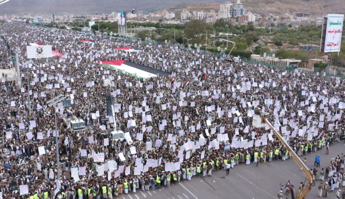 وأكد الحشود أن ما تحقق لليمن من انتصارات على قوى العدوان والاستكبار العالمي في إطار موقفه المناصر لغزة وفلسطين، هو نتيجة الثقة بالله والتوكل عليه.. مجددة تفويضها لقائد الثورة السيد عبدالملك بدر الدين الحوثي، ومباركة عمليات القوات المسلحة والتي أجبرت حاملة الطائرات الأمريكية على الفرار، وتواصل قصف عمق العدو الصهيوني وأهدافه الحيوية.