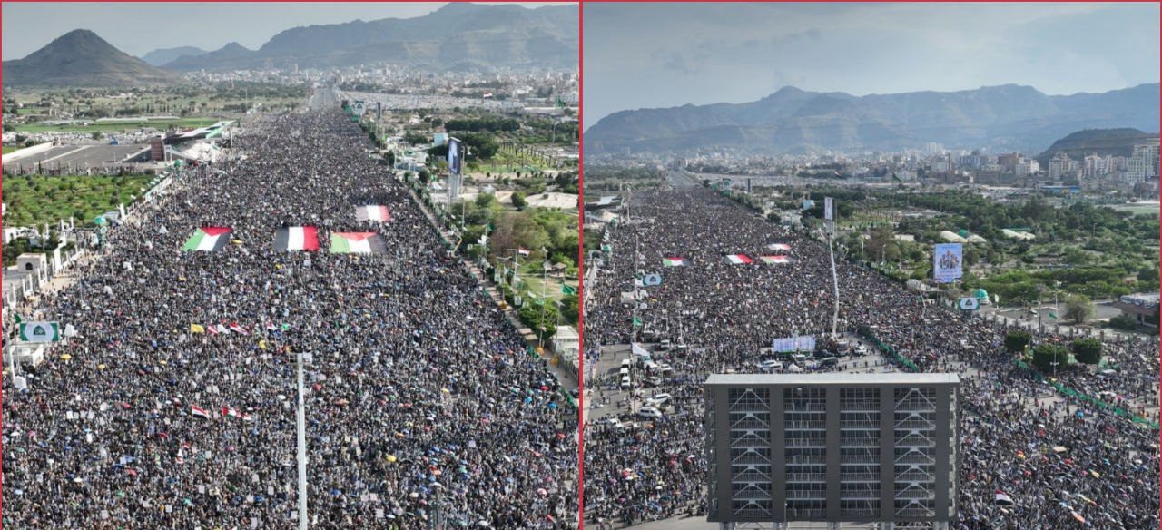 واكتظ ميدان السبعين بالعاصمة بحشود بشرية هائلة رفعت شعارات تؤكد استمرار الدعم للشعب الفلسطيني، فيما شهدت محافظات صعدة، الحديدة، حجة، إب، تعز، ذمار، البيضاء، عمران، المحويت، مأرب، ريمة، الجوف، الضالع ولحج مئات المسيرات والوقفات التضامنية، عبرت جميعها عن الجهوزية لمواجهة ما وصفوه بـ”العربدة الصهيونية” والتصدي لمشاريعه التوسعية في المنطقة.