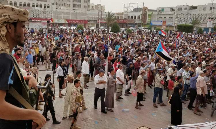 تظاهر الالاف من المحسوبين على المجلس الانتقالي الممول من الامارات في ساحة العروض بمدينة عدن، رفضا لما وصفوه ” الإجراءات السعودية الرامية إلى السيطرة على المدن الجنوبية”
