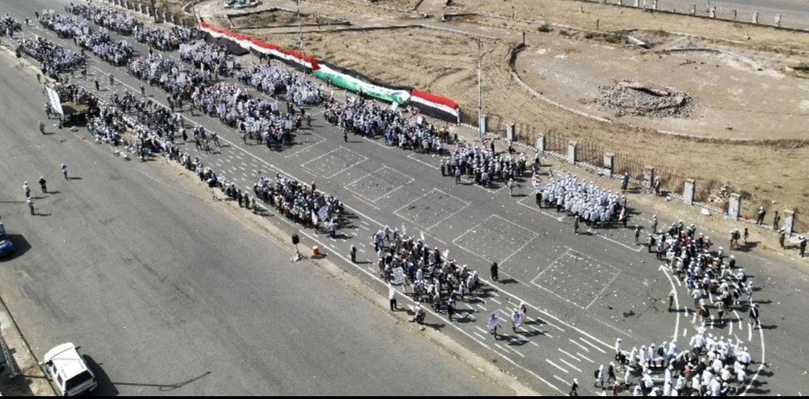 في مشهد يجسد مخرجات التعبئة العامة وروح الجهاد والمسؤولية، نظم خريجو دورات “طوفان الأقصى” من منتسبي الجامعات والمعاهد الحكومية بمحافظة الحديدة، الاربعاء، عرضاً عسكرياً وطلابياً مهيباً بمشاركة أربعة آلاف طالب، تعزيزاً للجهوزية العالية في سبيل الله ودفاعاً عن سيادة الوطن، ونصرةً للشعب الفلسطيني المظلوم.