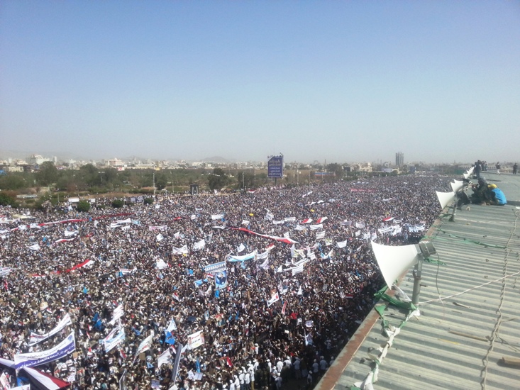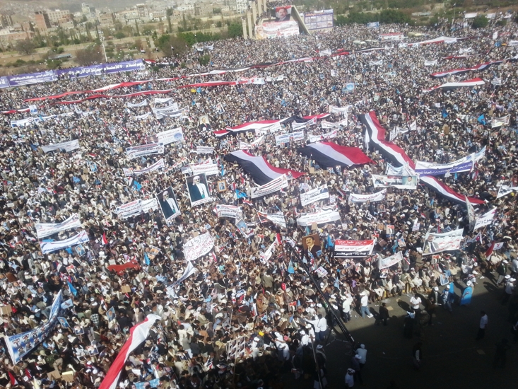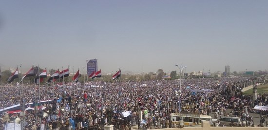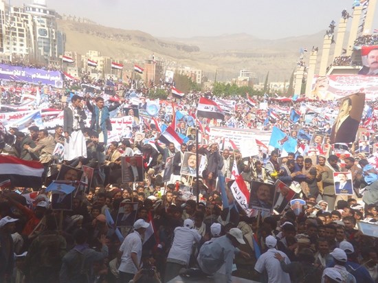 شهد ميدان السبعين في العاصمة صنعاء مهرجانا جماهيريا حاشدا بمشاركة نحو 2 مليون من اليمنيين في ذكرى مرور عام على العدوان السعودي على اليمن والتي أقيمت تحت شعار ” عام من الصمود والتحدي “.