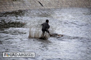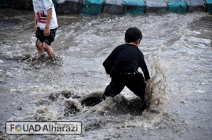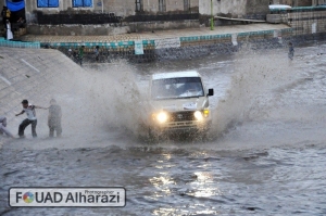 بالصور.. صنعاء تنفض عنها بارود العدوان السعودي وتغتسل بمياه الأمطار المتدفقه