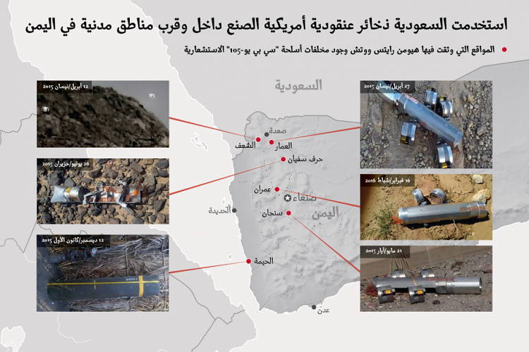 تجدر الإشارة إلى أن القنابل العنقودية محظورة بموجب معاهدة تعود للعام 2008 وقعتها 119 دولة، لكن ليس بين هذه الدول السعودية واليمن والولايات المتحدة.