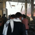 شاهد صور اولية للمجزرة البشعة التي ارتكبها طيران العدوان السعودي الامريكي عصر اليوم بحق مدنيين مشاركين في مراسم عزاء للشيخ علي بن علي الرويشان بالصاله الكبرى وسط العاصمة صنعاء .
