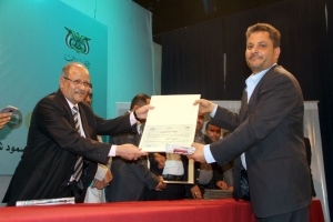 وفي ختام الحفل الذي جرى خلاله التوقيع على ميثاق الشرف الإعلامي قام عضوا المجلس السياسي الأعلى سلطان السامعي ومحمد النعيمي ووزراء الإعلام والمالية والخدمة المدنية بتكريم رئيس تحرير شهارة نت عبدالله الحنبصي وعدد من المؤسسات الإعلامية والقنوات والإعلاميين المبرزين الذين كان لهم دورا بارزا في كشف جرائم العدوان .