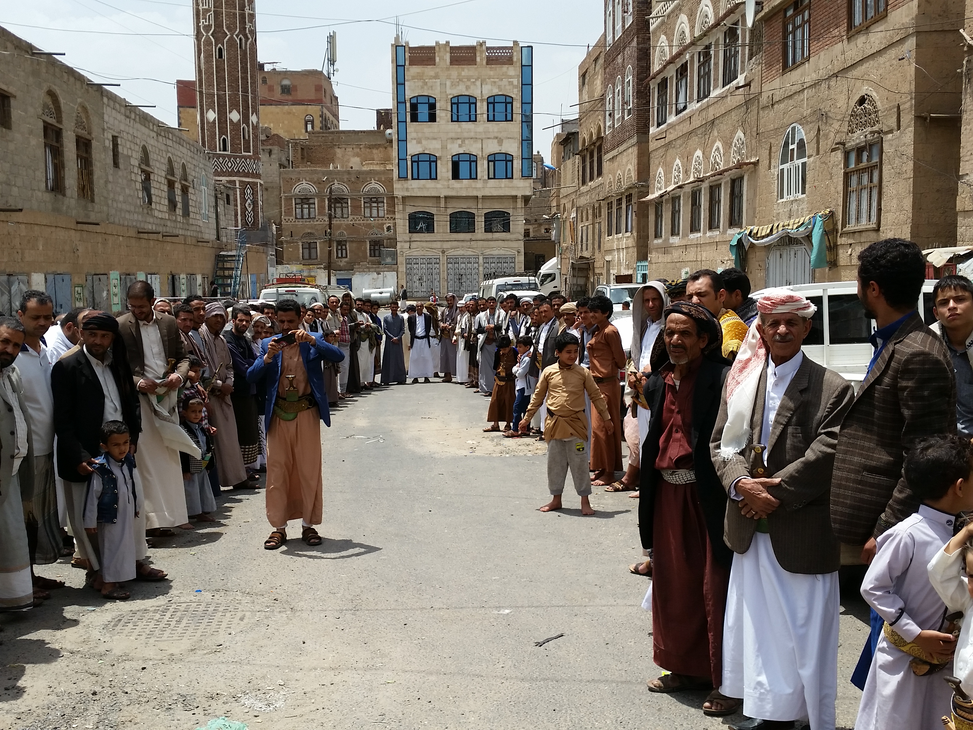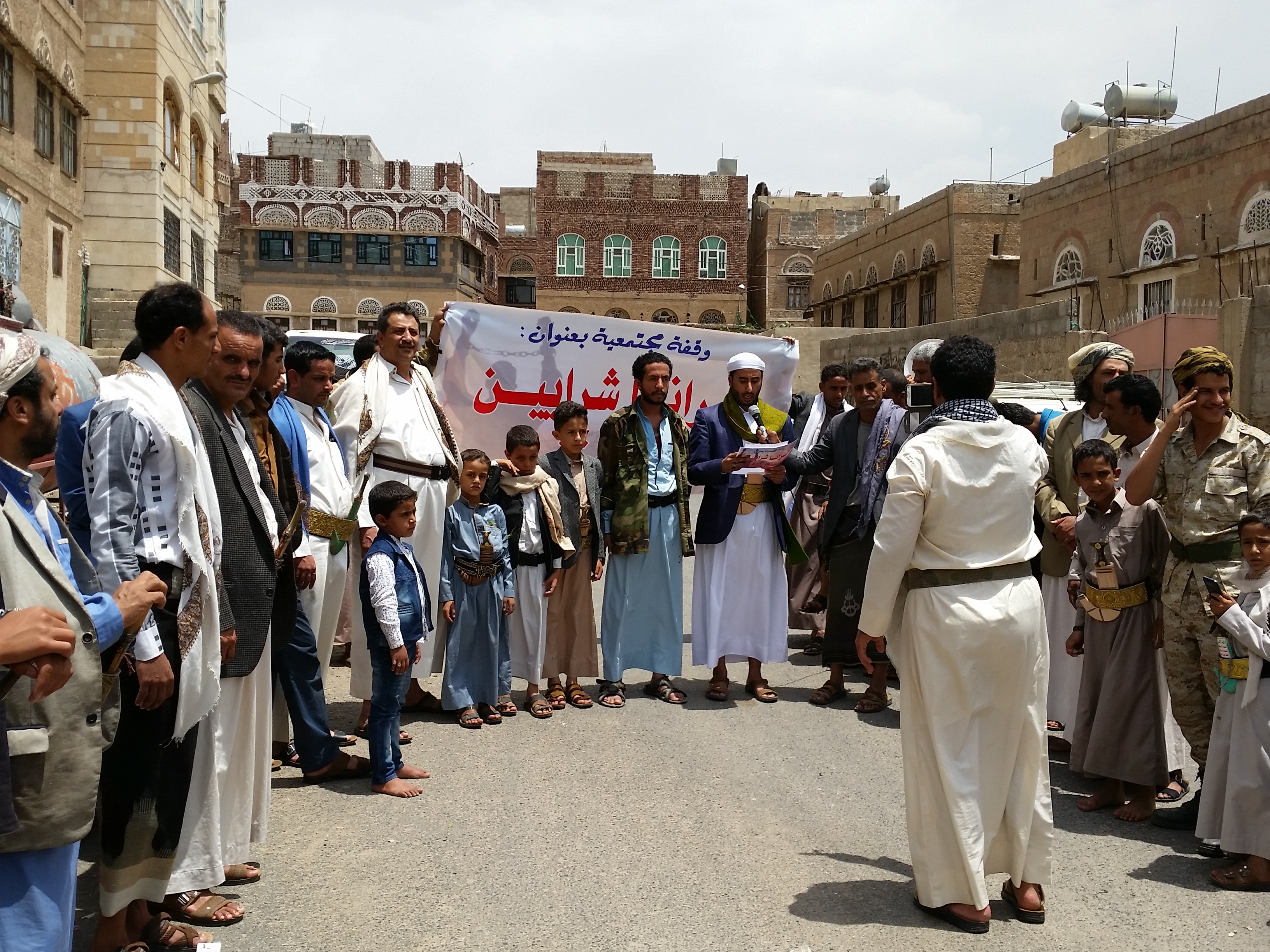 وشارك العشرات من ابناء منطقة الروض بصنعاء في الوقفة التي اقيمت تحت شعار ” اسرانا شرايين كرامتنا ”