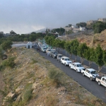 المواكب الكبيرة للسيارات ووسائل النقل بانواعها التي ازدحمت بها خطوط السير لطريق المحويت صنعاء جسدت اروع صور الوفاء والتفاعل الشعبي والجماهيري لابناء هذه المحافظة الاوفيا الذين تقاطروا من كل حدب وصوب من مختلف قرى ومحلات المحافظة ليلتحموا في مواكب مهيبة متدفقة باتجاة العاصمة صنعاء وهم يحملون الرايات والاعلام الخضراءَ ويرددون الزوامل والهتافات المعبرة عن انفة وعزة ابناء المحويت وشموخهم واعتزازهم بمبادرة الاحتشاد لاحياء ذكرى مولد الحبيب المصطفى عليه وعلى آله افضل الصلاة والتسليم