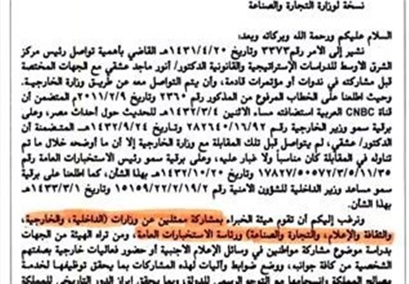 علما بأن انور عشقي (السعودي) الذي تحول الى واجهة للتطبيع مع “اسرائيل” تحركه 5 جهات سعودية ولا يتحرك قبل ان تعرف وجهته وماذا سيقول وهذه الجهات هي: وزارة الخارجية، ووزارة الداخلية، والاستخبارات العامة السعودية، ووزارة الثقافة والإعلام، ووزارة التجارة والصناعة.
