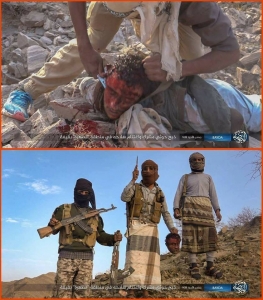 واظهرت وكالة اعلامية تابعة لتنظيم داعش عبر حسابها في التويتر، صور لعملية الذبح للجندي الاسير الذي اعتقلته مرتزقة العدوان خلال المواجهات التي اندلعت مؤخرا في الظهرة بمنطقة قيفة في رداع بمحافظة البيضاء وسط اليمن.