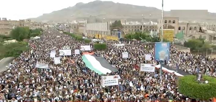 في مسيرة يمنية حاشدة بصنعاء : القدس أرض المسلمين وقبلتهم الاولی