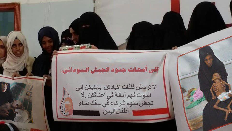 ووجهت أمهات اليمن رسالة الى الامهات السودانيات بالتوقف عن إرسال أبنائهم والتضحية بهم مقابل الاموال الخليجية التي تتسبب في قتل الاف الاطفال والنساء بصورة يومية في اليمن، فضلا عن موتٍ بالجملة للشباب السودانيين في جبال و أغوار اليمن،.