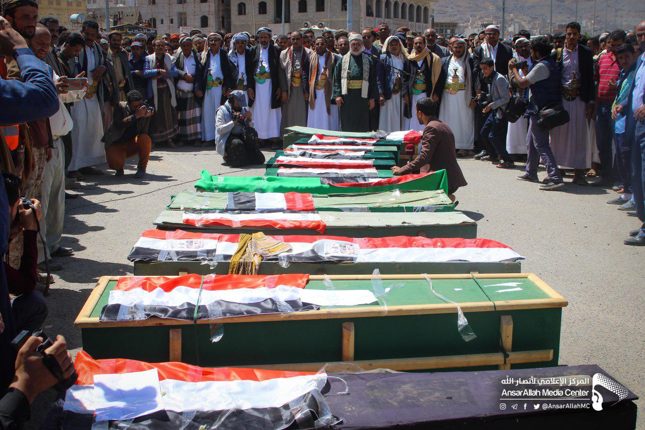 ومن المنطقة التي ارتكب فيها طيران العدوان السعودي الأمريكي الجريمة في سعوان شرق العاصمة صنعاء أقيمت مراسم التشييع.