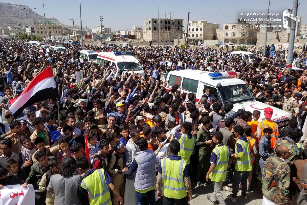 ودعت العاصمة صنعاء اليوم الأربعاء، في موكب جنائزي مهيب جثامين 14 شهيداً من طلاب وطالبات الجريمة التي ارتكبها طيران العدوان مستهدفا مدارس ومناطق سكنية في منطقة سعوان شرق صنعاء وراح ضحيتها ١٠٩ شهداء وجرحى.