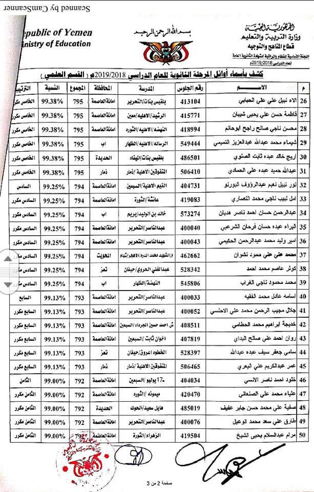عقب ذلك استعرض مدير عام الاختبارات بالوزارة صالح الوادعي أسماء أوائل الجمهورية ” علمي، أدبي ، أنجليزي وقرآن كريم ” .