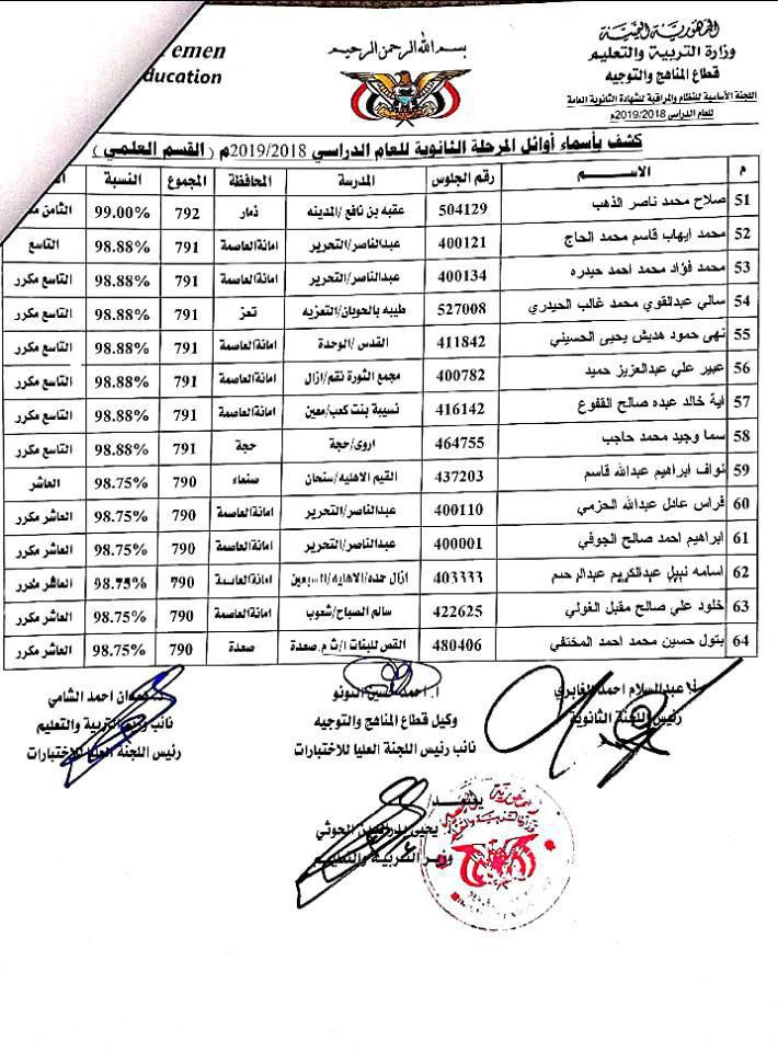 اعلان نتائج امتحانات الثانوية العامة في اليمن